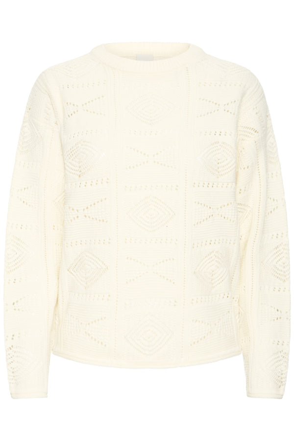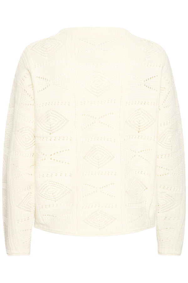 Pull en maille ajourée délicate, féminin et lumineux.